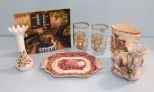 With two glasses, vases, resin carved and painted 5"x 7" picture & 8" English tray With two glasses, vases, resin carved and painted 5"x 7" picture & 8" English tray