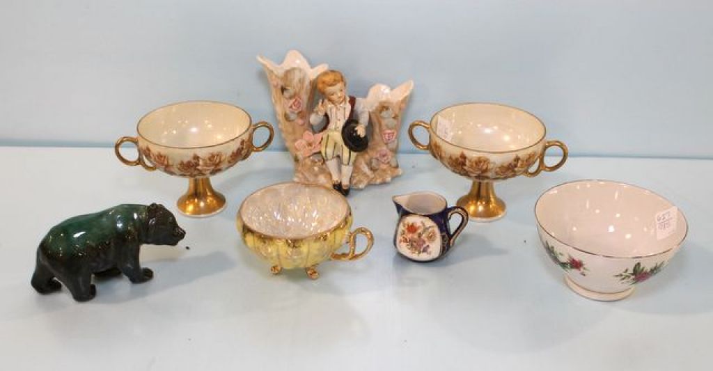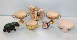 With porcelain cups, vase, bowl, bear & 3" pitcher With porcelain cups, vase, bowl, bear & 3" pitcher