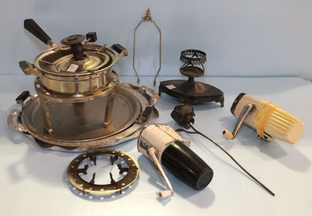 661 Fondue, Aluminum Trays, Silverplate Vase & Graters
