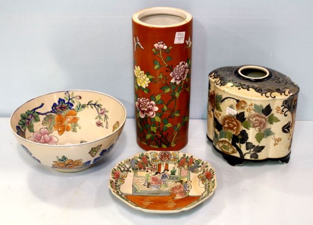 Vases 12", 9" h.; Bowl 10" dia.; Plate 8 1/2" dia. Vases 12", 9" h.; Bowl 10" dia.; Plate 8 1/2" dia.