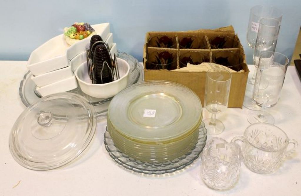 Group of glass, glass plates, glass trays, chip and dip dish & ceramic salt and pepper Group of glass, glass plates, glass trays, chip and dip dish & ceramic salt and pepper
