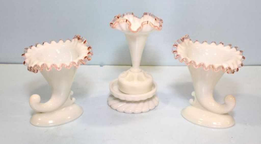 872 Two Fenton Glass Vases, Small Vase & Frog and Base