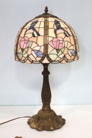 1156 Six Panel Stain Glass Lamp with Lily Pad Base