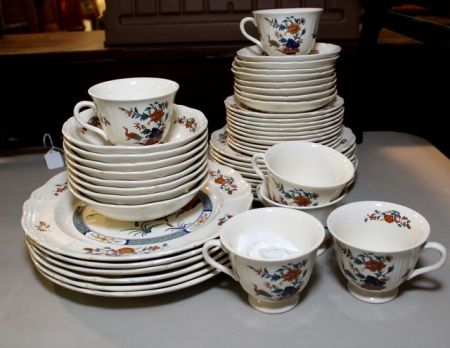 Consisting of six dinner plates, nine salad plates, ten bread/butter plates, six cups, eight saucers & eight bowls Consisting of six dinner plates, nine salad plates, ten bread/butter plates, six cups, eight saucers & eight bowls