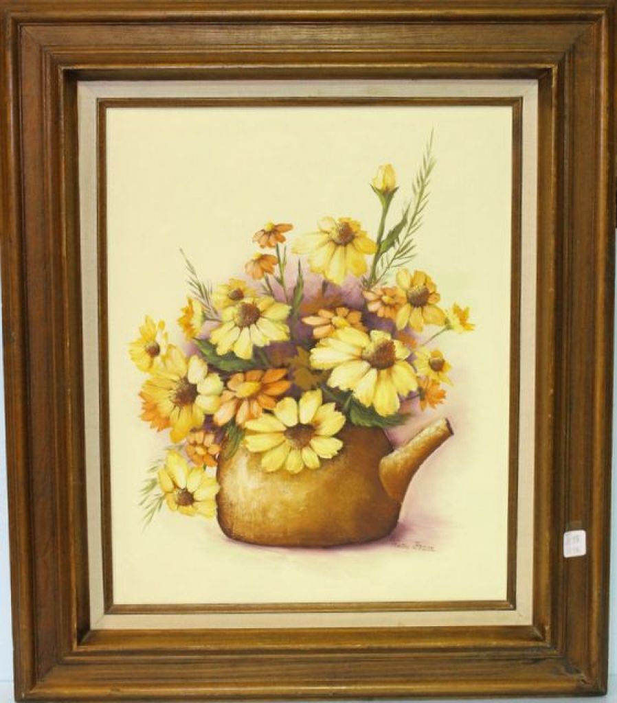 1195 Oil Painting of Flowers Signed Trudy Beard