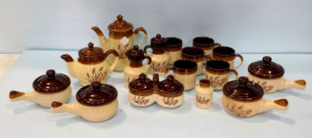 1234 Sixteen Pieces Brown Stoneware with Wheat Design
