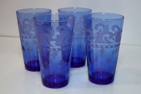 1283 Four Cobalt Etched Glasses