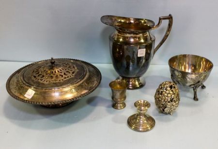 1305 Silverplate Pitcher, Covered Dish, Footed Sugar Bowl, Sterling Weighted, Toothpick Holder