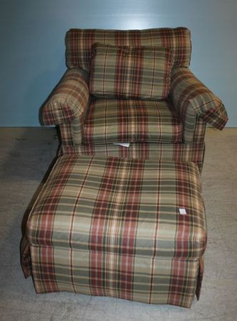 164 Large Den Chair Covered in Plaid with Matching Ottoman