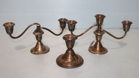 204 Single Gorham Weighted Candlestick, Two Alvin Sterling Two Arm Candlesticks with Center