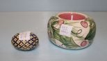 Hand painted pottery candlestick 4 1/2" Hand painted pottery candlestick 4 1/2"