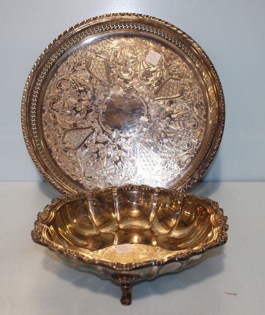 209 Large Footed Silverplate Bowl, Footed Round Tray