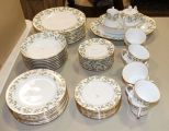 Includes set of eight plates 10 1/2" ; eight salad plates 8 1/4" ; eight bread/ butter plates; eight cereal bowls; eight cups; eight platters; vegetable bowl; sugar creamer; 52 pieces total Includes set of eight plates 10 1/2" ; eight salad plates 8 1/4" ; eight bread/ butter plates; eight cereal bowls; eight cups; eight platters; vegetable bowl; sugar creamer; 52 pieces total