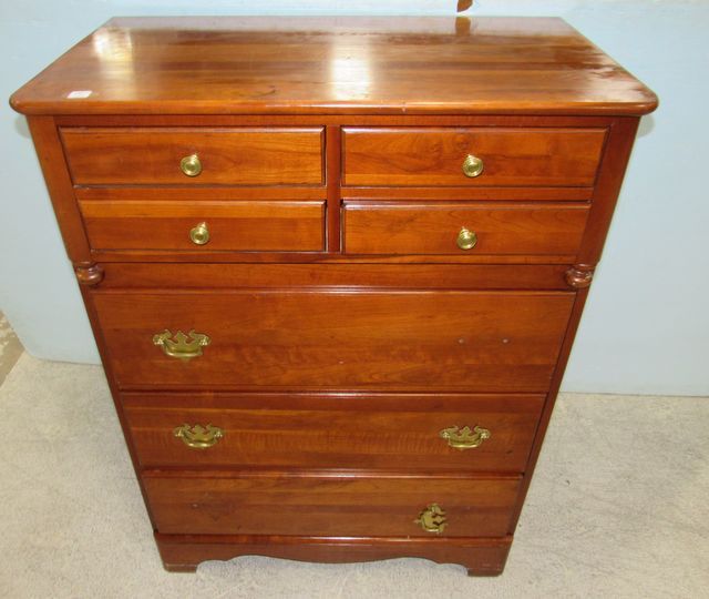 Seven drawers, worn on top, missing two knobs, 46"h., 34"w., 19"d. Seven drawers, worn on top, missing two knobs, 46"h., 34"w., 19"d.