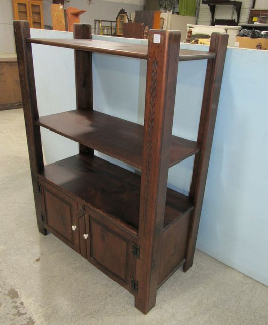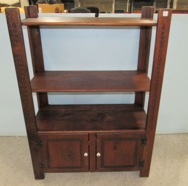 Two door storage, wheat carving, two shelves, pine, 49"h., 36"w., 17"d. Two door storage, wheat carving, two shelves, pine, 49"h., 36"w., 17"d.