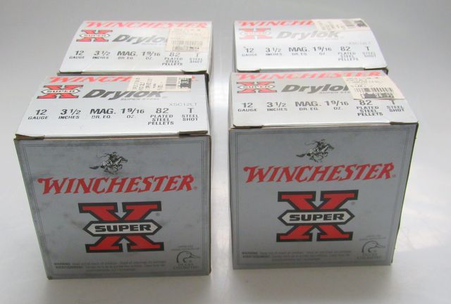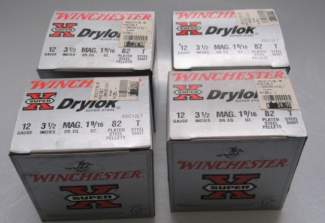 12 gauge, 3 1/2", mag, 1 9/16 oz., 82 steel pellets, T steel shot, 100 shells. 12 gauge, 3 1/2", mag, 1 9/16 oz., 82 steel pellets, T steel shot, 100 shells.