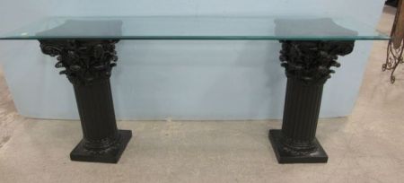 492 Two Column Pedestal Glass Top Sofa/Entrance Table