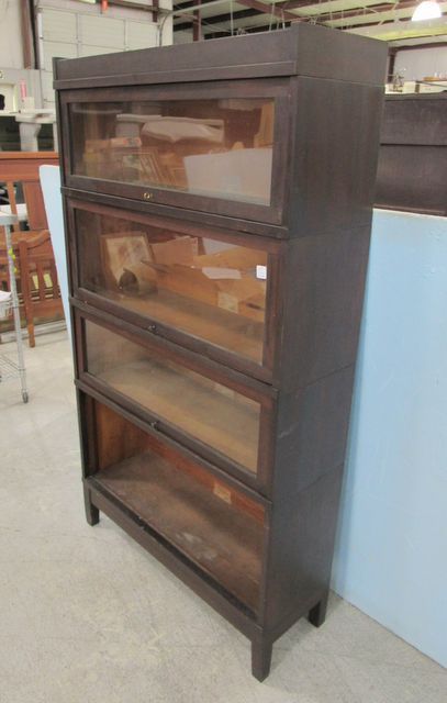 Pattern 713, Four stack, bottom stack is missing glass door, 61"h., 11"d., 34"w. Pattern 713, Four stack, bottom stack is missing glass door, 61"h., 11"d., 34"w.