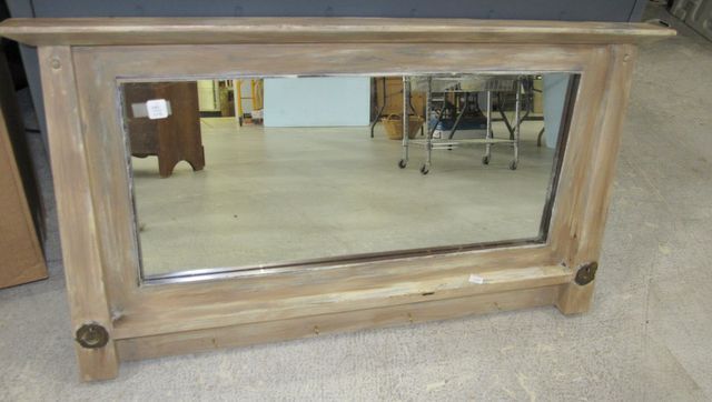 Painted distressed wall mirror with hanging hooks, 23"h., 40"w. Painted distressed wall mirror with hanging hooks, 23"h., 40"w.