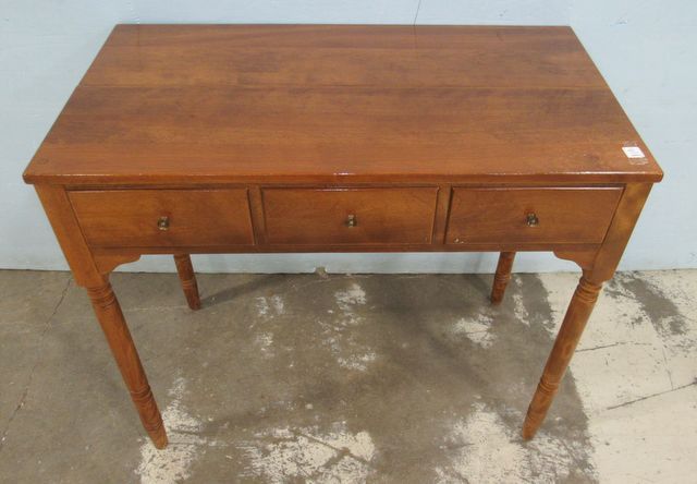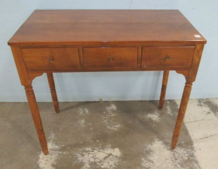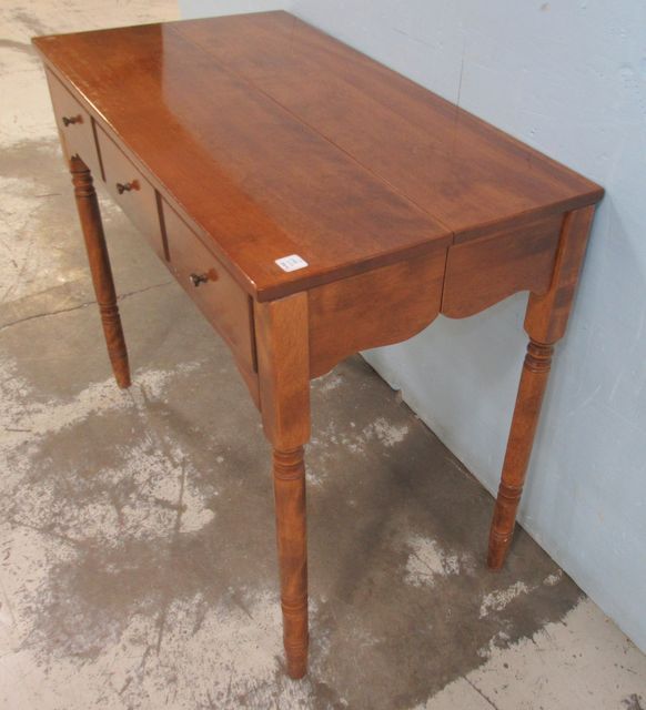 Extends with three leaves, has some scratches, has faux drawers on one side, without leaves it measures 30"h., 34"w., 18"d. Extends with three leaves, has some scratches, has faux drawers on one side, without leaves it measures 30"h., 34"w., 18"d.