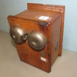 Missing handle, doved tailed oak case, 9"h., 6"w. Missing handle, doved tailed oak case, 9"h., 6"w.