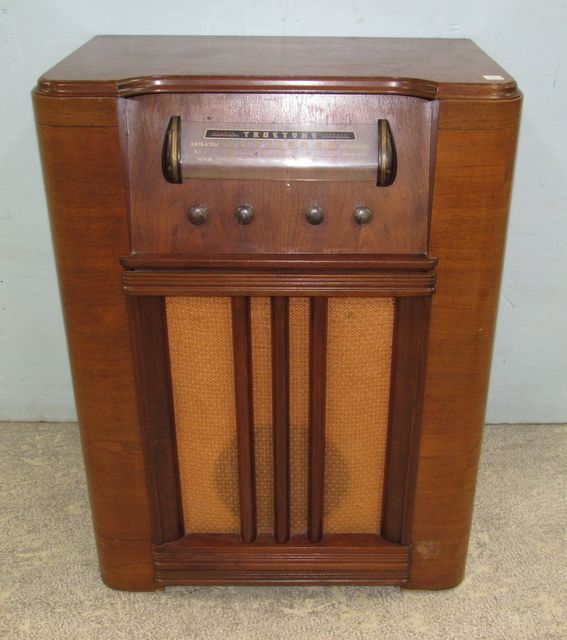 Does have the radio and record player, has some finish wear, radio needs work, 36"h., 27"w., 16"d. Does have the radio and record player, has some finish wear, radio needs work, 36"h., 27"w., 16"d.