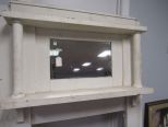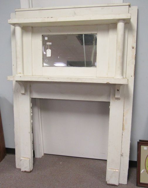 Wall mantle with mirror, has paint chipping, 74"h., 54"w. Wall mantle with mirror, has paint chipping, 74"h., 54"w.