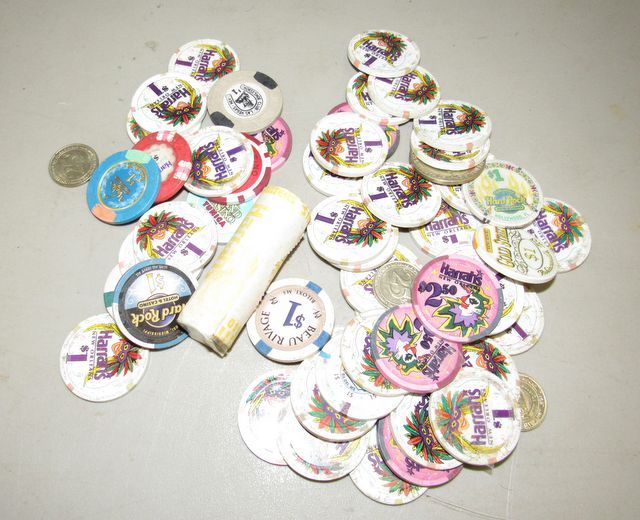 810 Harrah's One Dollar Poker Chips and 25 Cent Tokens