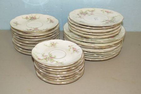 Five soup saucers, eight salad plates, ten bread and butter plates, eight cup saucers. Five soup saucers, eight salad plates, ten bread and butter plates, eight cup saucers.
