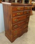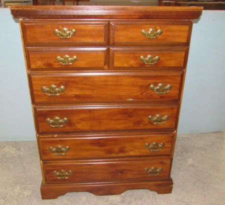 Five drawers, illuminate wood finish, damaged spot on top, 48"h., 36"w., 18"d. Five drawers, illuminate wood finish, damaged spot on top, 48"h., 36"w., 18"d.