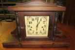 1980s mantle clock, battery powered, 13"h., 20"w. 1980s mantle clock, battery powered, 13"h., 20"w.