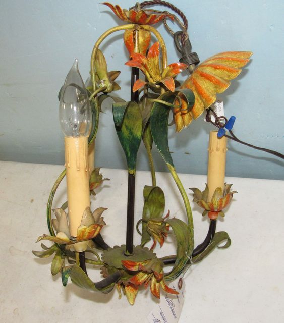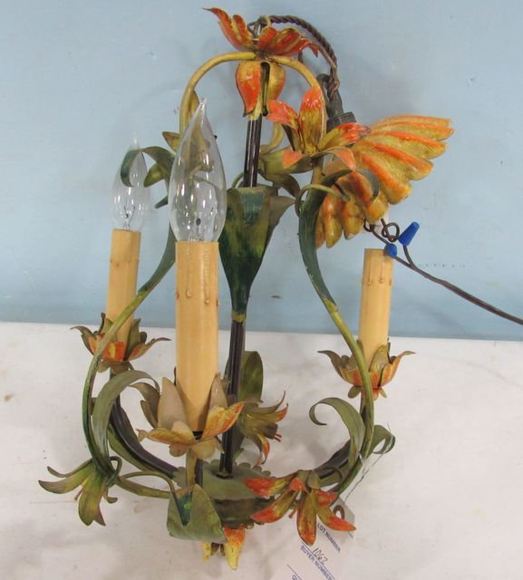 Three arm light fixture, with electric wall plug in, 16"h. Three arm light fixture, with electric wall plug in, 16"h.