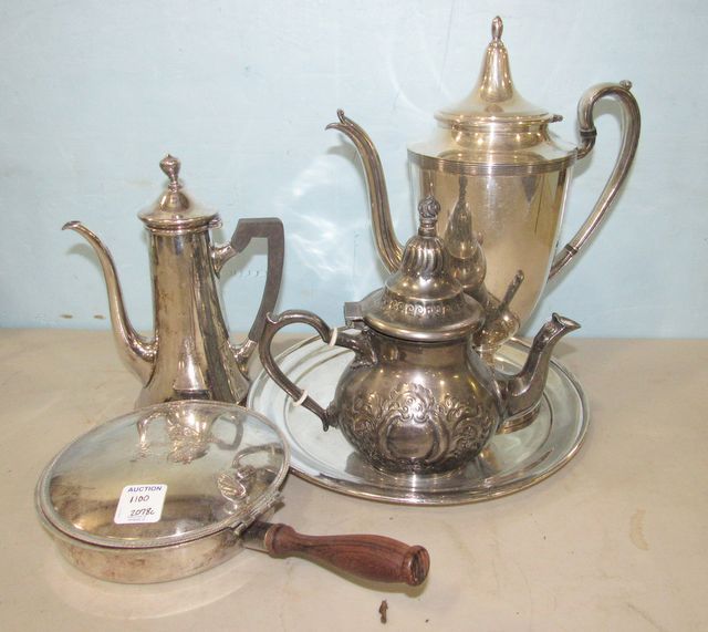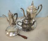 1100 Silver Plate Serving Pitchers, Tray, and Bed Warmer