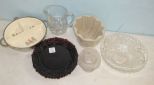 Child's divided dish, Stoneware pudding mold, Three Aron Cape Cod dessert plates, EAPG creamer, EAPG bowl, EAPG toothpick holder. Child's divided dish, Stoneware pudding mold, Three Aron Cape Cod dessert plates, EAPG creamer, EAPG bowl, EAPG toothpick holder.