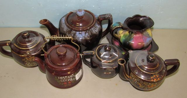 1245 Six Brown Ceramic Tea Pots