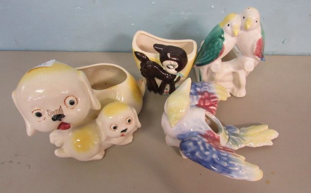 Dogs, Deer (has broken ear), two birds, one bird, largest is 4"h., 6"w. Dogs, Deer (has broken ear), two birds, one bird, largest is 4"h., 6"w.
