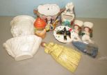 Jack and Jill pottery wall pocket 6"h., three bird planters, pair of mermaids, glazed lady planter 9"h. Jack and Jill pottery wall pocket 6"h., three bird planters, pair of mermaids, glazed lady planter 9"h.