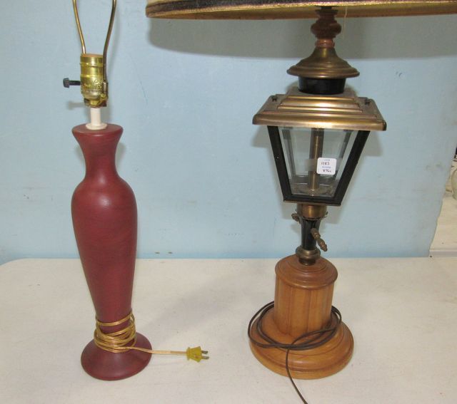 1283 Lantern Table Lamp and Red Ceramic Lamp