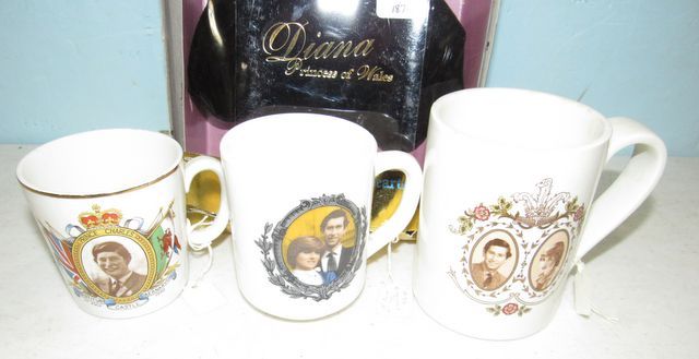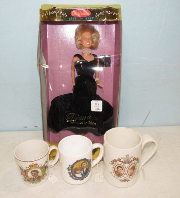 Diana collector's edition "Queen of People's Hearts" doll in box, three Charlie and Diana mugs. Diana collector's edition "Queen of People's Hearts" doll in box, three Charlie and Diana mugs.