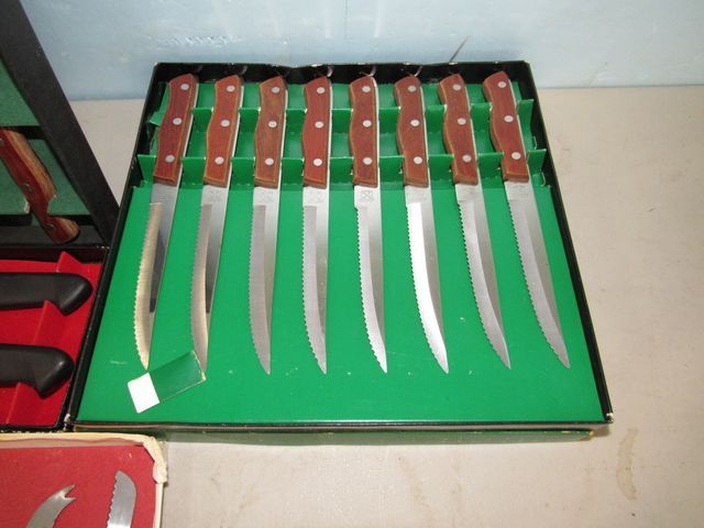 Barlow, Regent Sheffield, Maxam Corporation Steak Knives and carving set. Barlow, Regent Sheffield, Maxam Corporation Steak Knives and carving set.