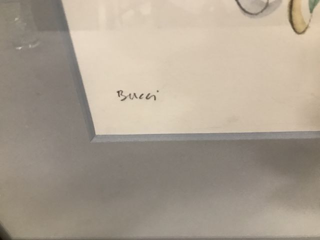Watercolor Abstract by Andrew Bucci, signed in pencil Bucci, colorful drawing and watercolor, framed, matted, frame is 21"h., 17"w. Andrew Bucci (1922-2014) was one of Mississippi's most prominent modern artists whose creative legacy had spanned nearly eight decades at the time of his death at age 92. Watercolor Abstract by Andrew Bucci, signed in pencil Bucci, colorful drawing and watercolor, framed, matted, frame is 21"h., 17"w. Andrew Bucci (1922-2014) was one of Mississippi's most prominent modern artists whose creative legacy had spanned nearly eight decades at the time of his death at age 92.
