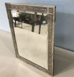 Vintage Sterling Framed Dresser Mirror, beveled mirrored, sterling frame with felt back and stand, monogrammed EWL, 13"h., 10 1/2"w. Vintage Sterling Framed Dresser Mirror, beveled mirrored, sterling frame with felt back and stand, monogrammed EWL, 13"h., 10 1/2"w.
