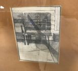 Pencil Drawing of Bench by Roland Golden, framed, matted, 12"h., 10"w. Pencil Drawing of Bench by Roland Golden, framed, matted, 12"h., 10"w.