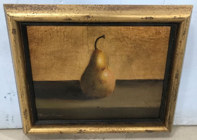 Antique Style Giclee Painting of Still Life Pear, gold gilt framed, modern decor, age crackling design, 16"h., 20"w. Antique Style Giclee Painting of Still Life Pear, gold gilt framed, modern decor, age crackling design, 16"h., 20"w.