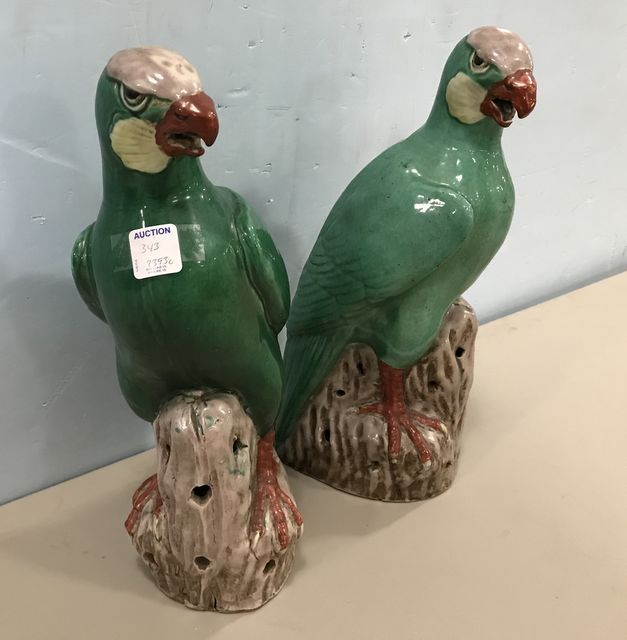 343 Pair of Hand Made Oriental Style Pottery Parrots