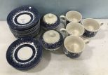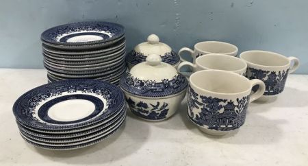 21 Churchill Willow saucers, four cups, and two containers. 21 Churchill Willow saucers, four cups, and two containers.
