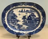 Vintage Blue & White Platter, has several heat damage spots, 21"w. Vintage Blue & White Platter, has several heat damage spots, 21"w.