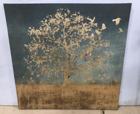 Decorative Giclee Painting Canvas, Gold tree with birds, modern decor, 40"h., 39"w. Decorative Giclee Painting Canvas, Gold tree with birds, modern decor, 40"h., 39"w.