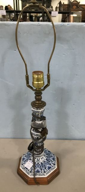 Deft Holland Style Lamp, hand painted porcelain blue and white, 22"h. Deft Holland Style Lamp, hand painted porcelain blue and white, 22"h.