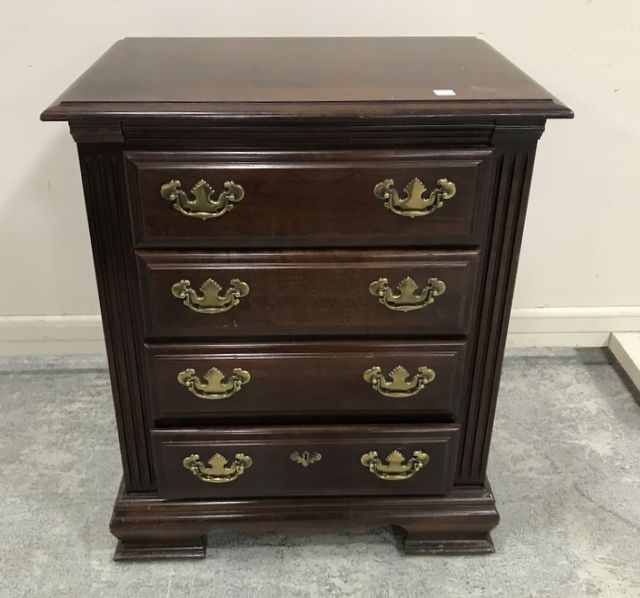 Modern Chippendale Style Bedside Table, four drawers, has finish wear, 31"h., 25"w., 17"d. Modern Chippendale Style Bedside Table, four drawers, has finish wear, 31"h., 25"w., 17"d.
